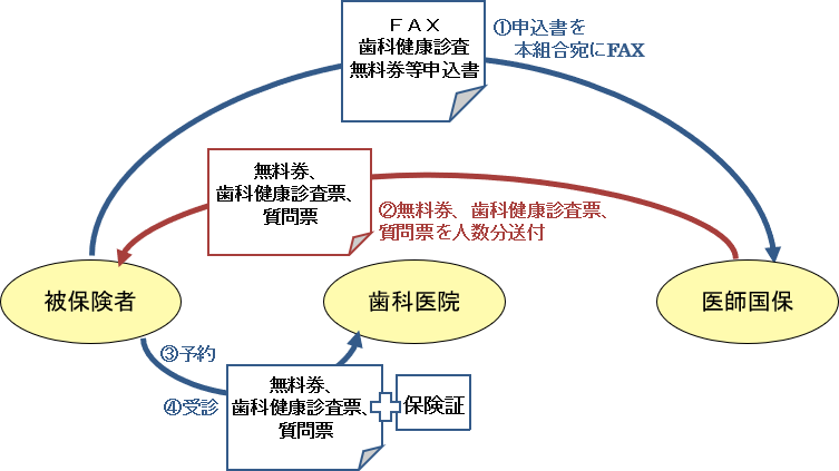 1. 歯科健康診査無料券等申込書に記入の上、組合宛にファックスしてください。