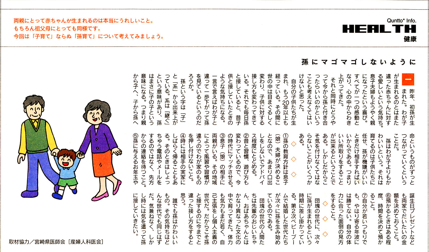 孫にマゴマゴしないように ホームお知らせ健康情報孫にマゴマゴしないように 更新日:2022.08.31 両親にとって赤ちゃんが生まれてくるのは本当にうれしいこと。 もちろん祖父母にとっても同様です。 今回は「子育て」ならぬ「孫育て」について考えてみましょう。
