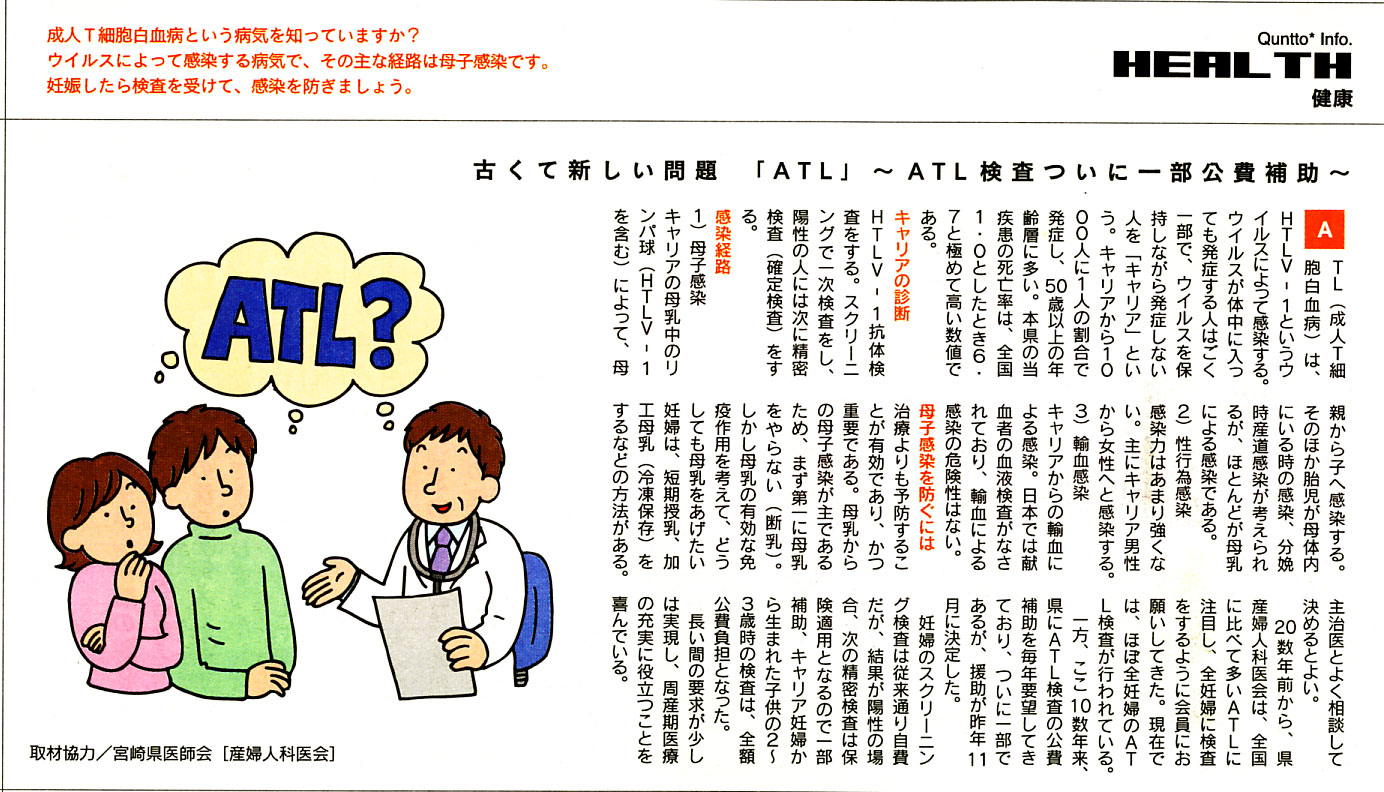 古くて新しい問題「ATL」~ATL検査ついに一部公費負担~